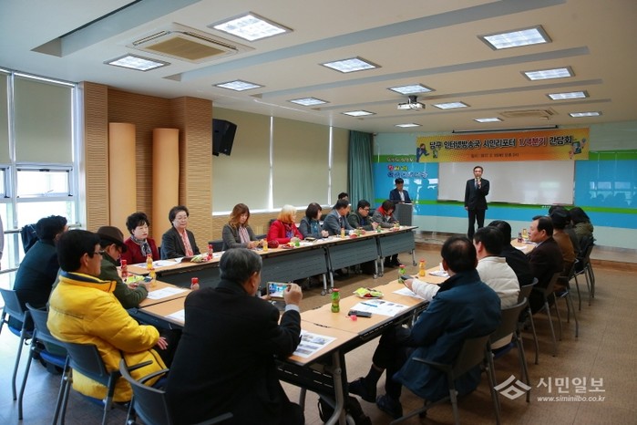 인천 남구는 지난 16일 숭의동 장사래도서관 회의실에서 ‘인터넷방송국 시민리포터 간담회’를 개최했다. 사진은 간담회에 참여한 구청 관계자 및 시민리포터들이 회의를 하는 모습.(사진제공=남구청)