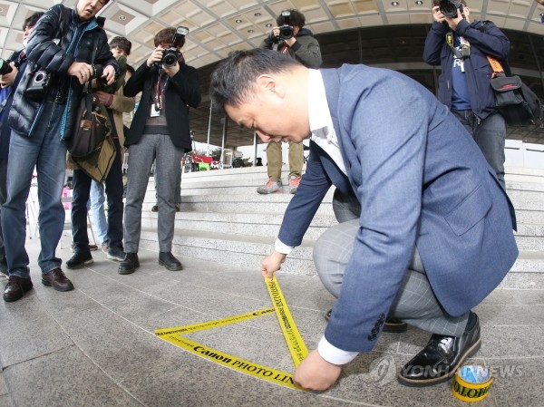 | ▲ 박근혜 전 대통령의 검찰 소환을 하루 앞둔 20일 오전 서울 서초구 서울지방검찰청사 앞에서 취재진이 포토라인을 설치하고 있다. | ||