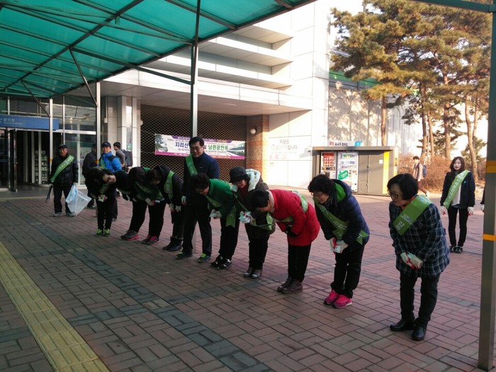 경기 양주시 회천1동 감동365추진협의체는 20일 덕정역에서 범시민 실천운동인 '친절양주 인사 잘하기 운동' 캠페인을 실시했다. 사진은 관계자들이 시민들에게 인사를 하는 모습.(사진제공=양주시청)