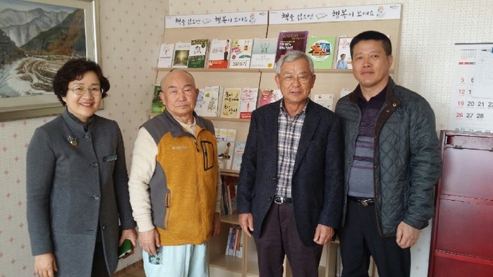 최근 경기 여주시 흥천면 율극2리 마을회관에서 이현숙 흥천면장, 박종덕 (주)하이드로 대표이사, 박호선 율극2리 이장(왼쪽부터) 등의 관계자들이 참석한 가운데 ‘율극2리 마을도서관’ 개관식이 개최됐다.(사진제공=여주시청)