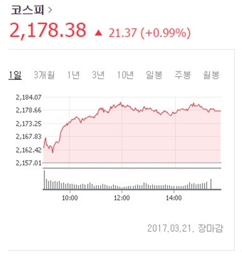 오늘(21일) 코스피가 21일 2,170선에 이어 장중 2,180선까지 돌파했다. 외국인과 기관의 동반 매수세에 힘입어 장중 연중 최고치를 연달아 갈아 치운 것.