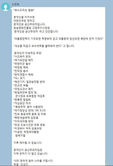 이날 여선웅 민주당 소속 강남구의원이 신 강남구청장이 지난 20일 자신의 SNS를 통해 '문재인을 지지하면 대한민국이 망하고 문재인은 공산주의자다'는 글과 '놈현‧문죄인의 엄청난 비자금' 동영상을 유포한 내용을 캡처해 공개한 것.