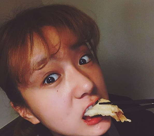 사진 속에서 보미는 음식을 먹으며 감탄을 하는 모습을 드러내 시선을 집중시킨다.