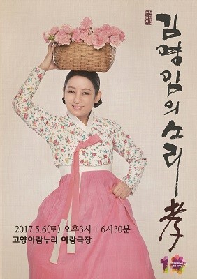 고양문화재단 아람누리 10주년 기념 <김영임의 소리 ‘孝’> 공연이 5월 6일 토요일 오후 3시와 6시 30분에 고양아람누리 아람극장에서 열린다.