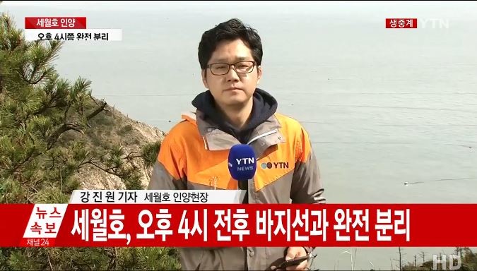 세월호를 목포 신항으로 옮길 반잠수식 선박에 세월호 선체가 선적됐는데, 현재는 잭킹 바지선 즉 인양선과 분리하기 위한 작업이 진행되고 있다.