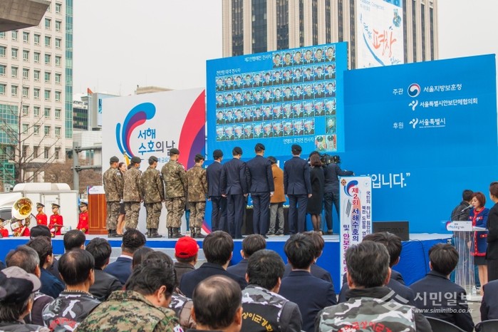 [시민일보=이대우 기자] 지난 24일 서울지방보훈청이 서울 광화문 중앙 광장서 전사자 유가족, 주요 인사, 각계 대표, 시민, 학생, 군 장병 등이 참여한 ‘제2회 서해수호의 날 기념식’을 개최했다. 사진은 이날 행사에 참여한 군 장병들이 숭고한 희생을 치룬 호국영웅들을 기리기 위해 헌화를 하고 묵념을 하고있는 모습.