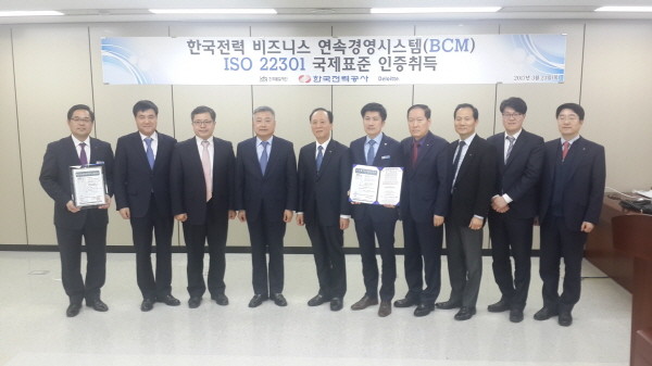 한전은 태풍, 지진·해일, 전력수요급증, 사이버테러, 화재 등으로 인해 송·변전, 배전 및 이와 관련한 운영업무가 중단될 경우 사전 준비된 다양한 복구계획에 따라 목표시간 내 신속하게 정상화할 수 있는 경영능력을 확보했음을 공인받았다.