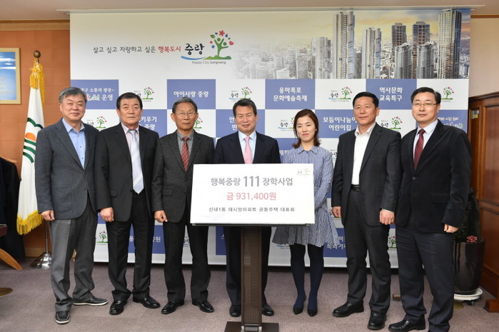 신내1동 데시앙아파트 공동주택 대표회, 중랑구에 장학금 기탁