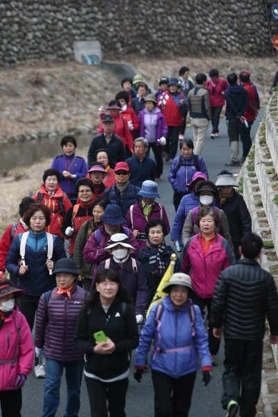 지난 25일 성북구가 성북천을 따라 용두초등학교를 반환점으로 다시 구청 바람마당으로 돌아오는 약 2.5km 코스로 ‘3월 성북구민 걷기대회’를 개최했다. 사진은 대회에 참여한 주민들이 열심히 걷는 모습.(사진제공=성북구청)