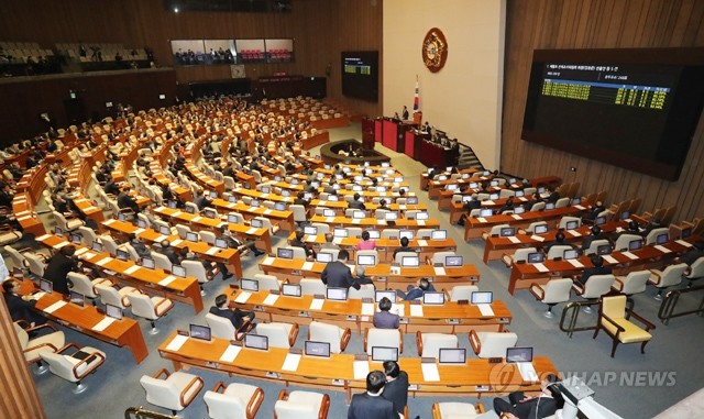28일 오전 국회 본회의장에서 열린 3월 임시국회 3차본회의에서 김창준 변호사와 장범선 서울대 조선해양공학과 교수 등 국회추천 5명의 세월호 조사위원회 위원 선출안이 통과되고 있다. 조사위는 자료와 물건 제출 명령, 동행 명령, 고발·수사 요청 등을 할 수 있으며 미수습자 수습과 선체 내 유류품과 유실물 수습 과정 등도 담당한다.