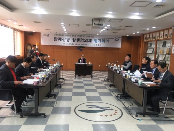 강동구는 지난 27일 '함께강동 상생협의체' 제6차 정기회의를 개최하고, 중소 가구업체의 상생방안에 대한 열띤 논의를 펼쳤다. 사진은 관계자들이 회의하는 모습.(사진제공=강동구청)