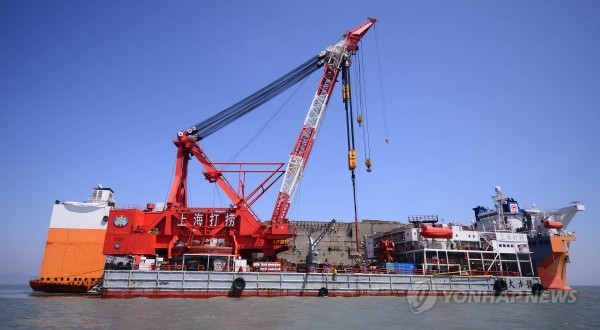 앞서 세월호를 반잠수식 선박에 고정하는 작업은 지난 28일 반잠수식 선박에 고정하는 용접을 하는 중 갑판에서 뼛소각이 발견돼 중단됐다.