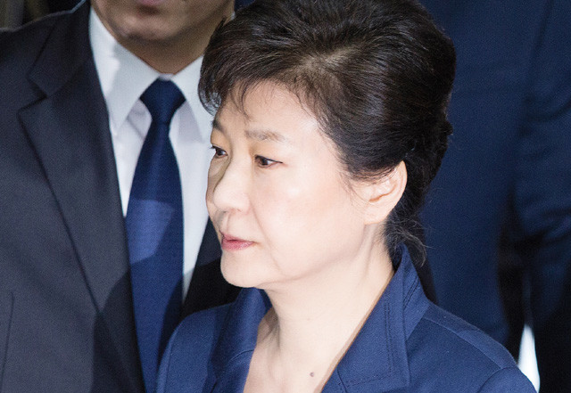뇌물수수 등 혐의로 구속영장이 청구된 박근혜 전 대통령이 30일 오전 서울 서초구 서울중앙지법에서 열린 구속 전 피의자심문(영장실질심사)에 출석하기 위해 법정으로 향하고 있다.