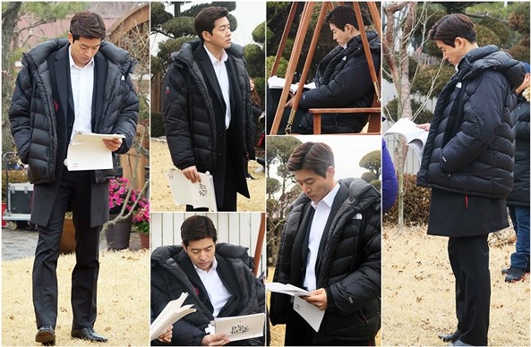 이상윤은 3일 '귓속말' 야외 현장 속에서도 대본에 몰두한 모습을 공개했다.