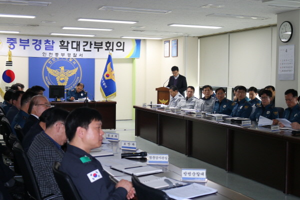 인천중부경찰서는 3일 오전 9시 3층 소회의실에서 각 과·계장 및 지구대장 등의 관계자들이 참석한 가운데 '2017년 4월 중 치안성과 보고대회'를 개최했다. 사진은 안영수 서장 및 경찰 공무원들이 부서별 성과평과 결과를 분석하는 모습.(사진제공=인천중부경찰서)