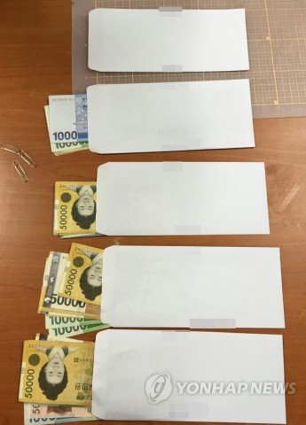 | ▲ 방과 후 업체와 이중계약을 맺고 방과 후 수업비를 빼돌려온 유치원·어린이집 운영자와 방과 후 업체 대표 등이 주고받은 현금봉부.(사진제공=연합뉴스) | ||