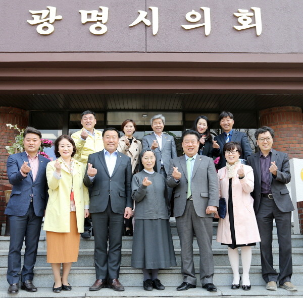 4일 경기 광명시의회 복지건설위원회는 나상성 의원 등과 지역내 복지관 관장들이 복지발전을 위한 간담회를 마친 후 기념촬영을 하고 있다.