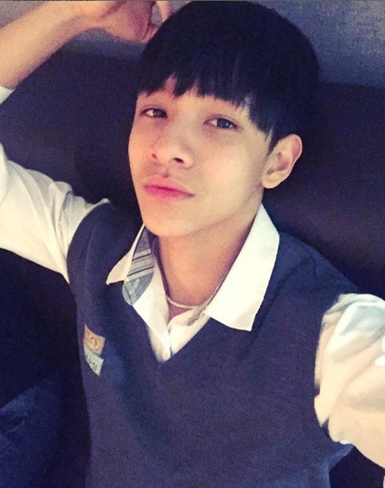 공개 된 사진 속 그는 교복을 입고 귀여운 표정을 짓고 있다.