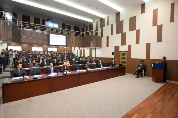 최근 서울 은평구가 구청 대회의실에서 78명의 건축사와 6개 재건축·재개발사업장의 조합장, 철거책임자 등 90여명을 대상으로 '건축물 철거공사장 안전관리 개선대책 교육'을 실시했다. 사진은 참석자들이 교육을 받고 있는 모습.(사진제공=은평구청)