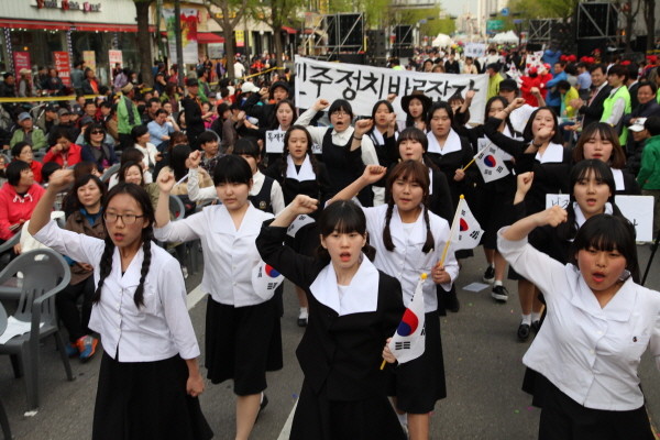 | ▲ 지난해 열렸던 '4.19혁명 국민문화제'에 참여한 학생들과 시민들이 4.19 당시의 시대상을 재현하는 '1960년 거리재현 퍼레이드'를 펼치고 있다. | ||