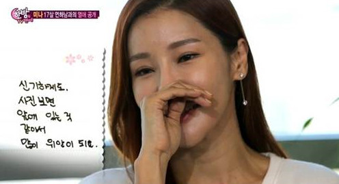 과거 미나는 SBS ‘한밤의 TV 연예’에 출연해 인터뷰를 진행했다. 특히 이날 방송에서는 류필립이 군대에서 보낸 편지도 공개돼 눈길을 끌었다.