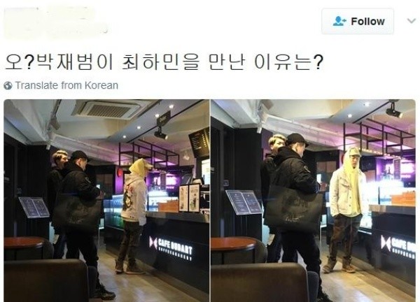최근 트위터 상에는 한 카페에서 박재범과 최하민이 카페에서 음료를 주문하고 있는 듯한 모습이 담긴 사진 두 장이 게재됐다.