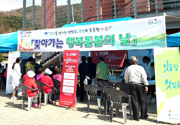 최근 경기 양평군은 청운면사무소 광장에서 청운면 지역 노인 및 장애인 등 취약계층을 대상으로 복지·건강·학습·고용 등 다양한 맞춤형 행복돌봄 서비스를 제공하는 ‘찾아가는 행복돌봄의 날’ 행사를 개최했다.(사진제공=양평군청)