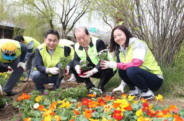 박홍섭 마포구청장, NH농협은행과 봄맞이 봄꽃 심기