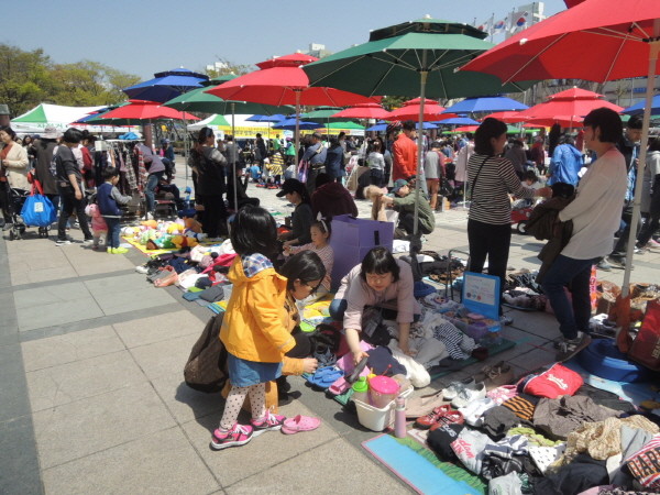 인천 연수구는 지난 15일 구청 상징광장에서 ‘2017년 제1회 알뜰나눔장터’를 성황리에 개최했다. 사진은 장터를 방문한 주민들이 판매 물품을 구경하는 모습.(사진제공=연수구청)