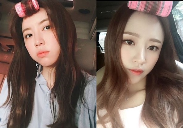 게재된 사진 속 그는 머리에 헤어롤을 말고 볼에 바람을 넣고 카메라를 응시하고 있으며 이는 걸그룹 EXID의 하니를 연상케해 눈길을 끌었다.