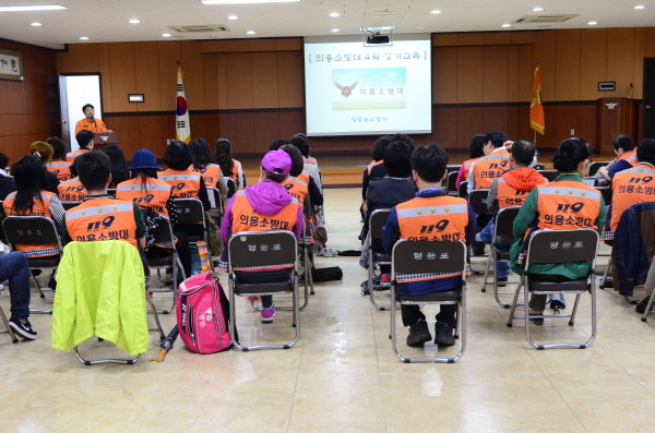지난 18일 영등포소방서는 4층 대강당에서 의용소방대(남ㆍ여)대장 등 의용소방대원이 참석한 가운데 정기교육을 실시했다. 사진은 소방공무원이 소방시설의 종류와 구조 원리에 대해 교육하는 모습.(사진제공=영등포소방서)
