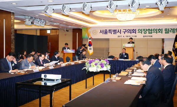 [시민일보=이대우 기자] 서울 송파구의회(의장 안성화)는 지난 19일 롯데호텔월드(사파이어볼룸)에서 ‘서울특별시 구의회 의장협의회 월례회의’를 개최했다.