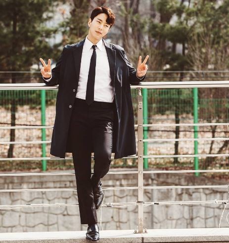 수트를 차려 입은 윤현민은 귀엽게 양손으로 브이 포즈를 하고 있다. '터널'에서 카리스마 있는 모습과는 완전히 대비되는 모습이다.