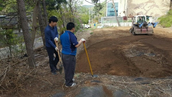 경기 수원시 팔달구 화서1동 새마을지도자협의회는 지난 24일 지역내 어려운 이웃을 후원하기 위해 장안구 이목동에 위치한 텃밭(660㎡) 에서 사랑의 텃밭 가꾸기 행사를 가졌다. 사진은 협의회 회원들이 밭고르기를 하는 모습.(사진제공=팔달구청)