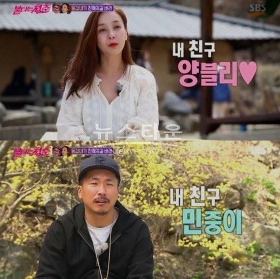 SBS '불타는 청춘' 25일 방영분에서 카레이싱을 한 뒤 양익준과 권민중이 신발을 벗고 산책로를 걷다가 권민중을 가볍게 업으며 달달한 분위기를 자아낸 것.