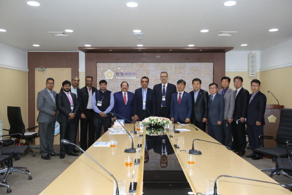 | ▲ 사진설명=지난 24일 인도전자산업협회(ELCINA) 방문단이 경기 안양시의회를 찾았다. 사진은 시의회와 방문단 관계자들이 기념촬영을 하는 모습. | ||