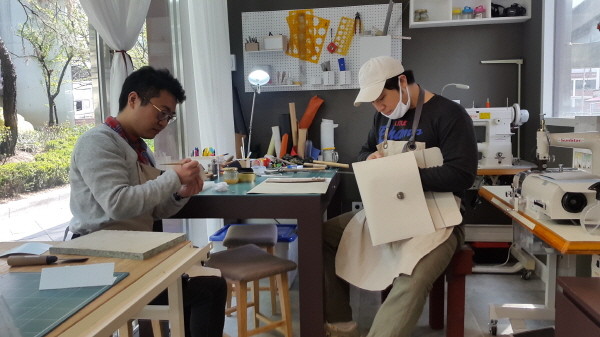 최근 성동구는 성수동 수제화산업 진흥 독려와 일자리 창출을 위해 수제화 공동판매장 2개 매장내에 청년창업공방 1·2호점을 개설했다. 사진은 청년창업공방에 입점한 청년들이 수제화 작업을 하고 있는 모습.(사진제공=성동구청)