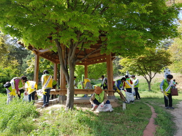 경기 수원시 영통구 매탄1동은 지난 26일 마을만들기 '1+3세대 세대공감 사랑나누기' 추진을 위해 수원매화초등학교 어린이들과 함께 발대식을 열었다. '세대공감 사랑나누기'는 지역의 노인들과 어린이들이 함께 텃밭가꾸기 등을 체험하며 소통하는 프로그램이다. 사진은 참여자들이 경로당 주변 쓰레기는 줍는 모습.(사진제공=영통구청)