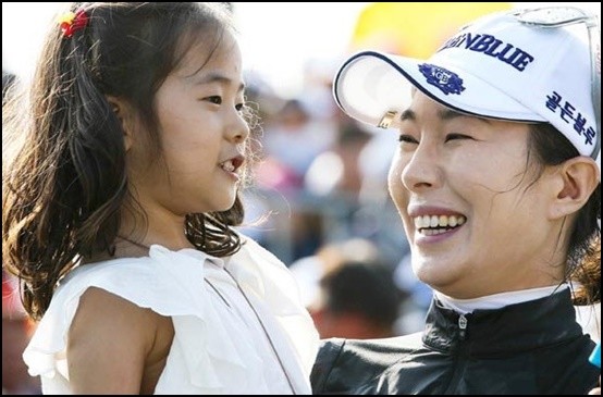 안시현의 인스타그램 사진에는 안시현이 2016년 KLPGA 메이저 대회인 기아자동차 한국오픈 골프선수권대회에서 우승을 차지한 후 마르코와 너무도 많이 닮은 귀여운 딸과 우승의 기쁨을 나누며 활짝 웃고 있다.