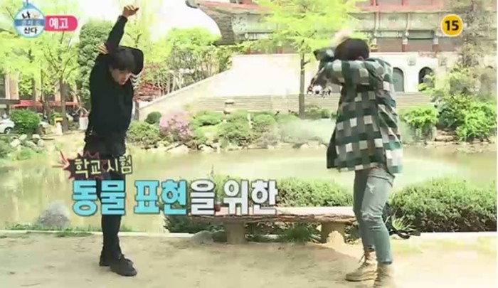 28일 '아 혼사 산다'에서는 2PM멤버 찬성과 함께 동물 연기를 선보여야 하는 시험을 준비하기 위해 캠퍼스에서 만나 독특한 시험공부를 했다.