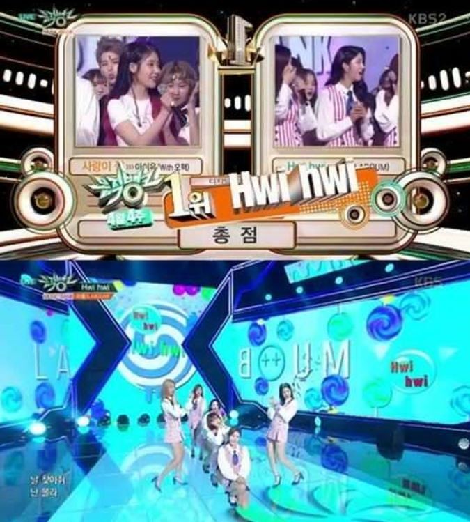 라붐은 이날 방송된 KBS2 뮤직뱅크에서 신곡 휘휘로 아이유의 사랑이 잘을 꺾고 1위를 했다.