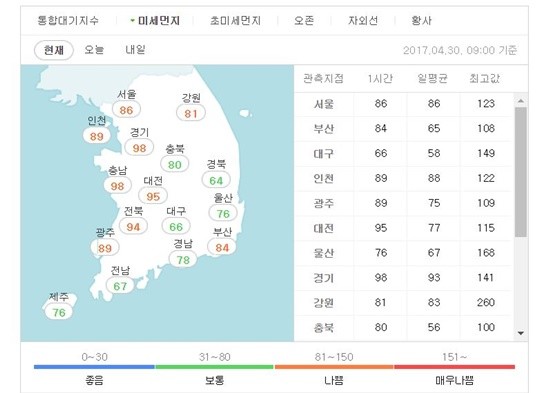 기상청에 따르면 어제와 같이 미세먼지 농도가 좋지 않다고 밝혔다.