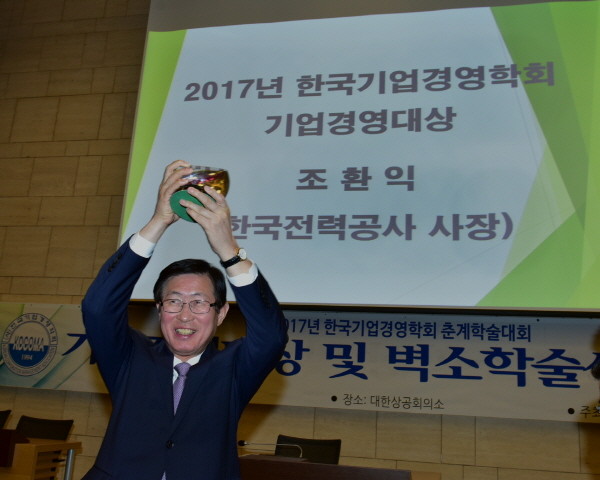 한국기업경영학회는 조환익 사장이 2012년부터 한전을 이끌면서 디지털 한전(Digital KEPCO)으로의 전환을 추진하고 있을 뿐 아니라, 4차 산업혁명과 기후변화에 대응해 에너지신산업을 선도하는 경영혁신을 추진해 온 점과 안정적 전력공급 등 국민경제 발전에 기여한 점을 높게 평가해 이번에 수상자로 선정했다.