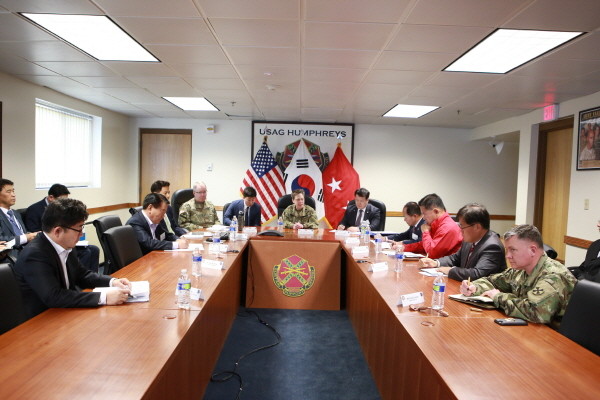| ▲ 사진설명=경기 평택시의회 주한미군이전 관광문화 대책 특별위원회가 최근 평택시 팽성읍 소재 미군부대(미8군, K-6 캠프험프리스)를 방문, 미8군 행정부사령관, K-6 기지사령관과 주한미군이전에 따른 관광 및 문화 대책 관련 현안간담회를 열고 관련 내용을 논의하고 있다. | ||