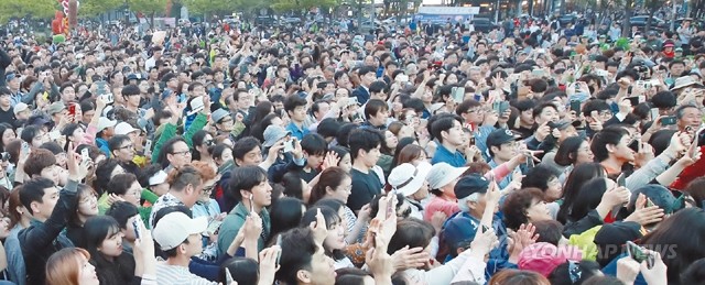 국민의당 안철수 대선후보가 30일 오후 경기도 고양시 일산동구 미관광장에서 열린 수도권 지역 거점 유세 때 연설하는 모습을 시민들이 지켜보고 있다.