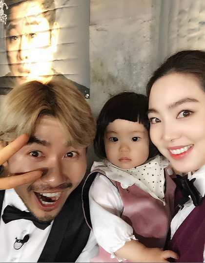 그는 공개된 사진 속에서 방송인 노홍철과 차유람의 딸과 함께 다정한 포즈로 카메라를 응시하고 있다.