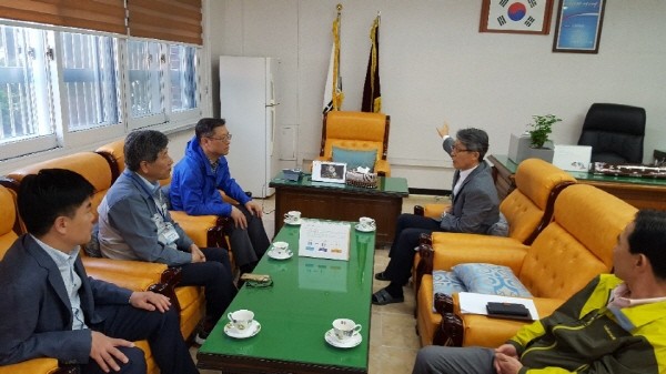 이상훈 수원시 영통구청장은 지난 1일 현장에서 답을 찾는 현장행정을 실천하기 위해 주요 사업현장 로드체킹을 실시하고 관계자와의 간담을 실시했다. 사진은 이 구청장(왼쪽)이 관계자들과 이야기를 나누는 모습.(사진제공=영통구청)