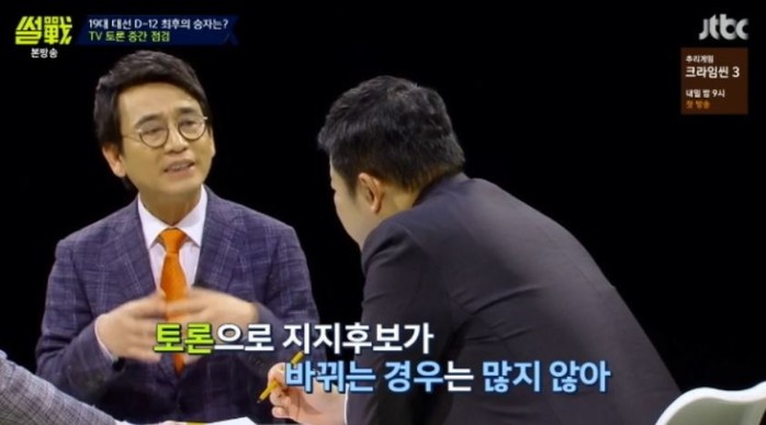 이에 유시민도 tv토론의 법칙은 지지율이 높을 수록 관심도가 올라가고 공격을 많이 받는다. 당선가능성이 낮으면 지지율에 덜 얽매여서 모험이 가능하다고 뜻을 같이 했다.