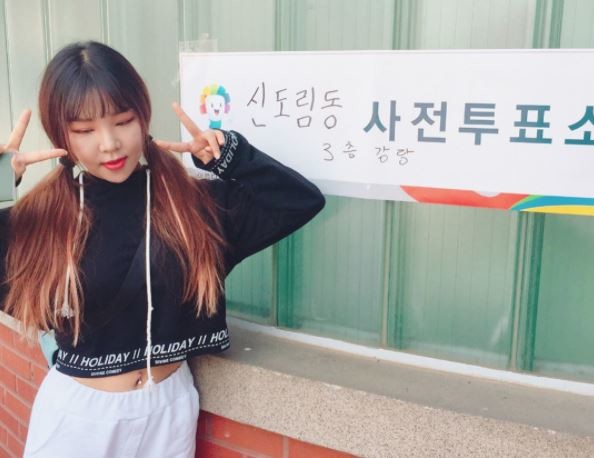 키디비는 최근 자신의 인스타그램에 "인나자마자 퉁퉁 부은 상태로 투표완료! 손모양과는전혀상관없음 난그냥브이가 좋을 뿐이야"라는 글과 함께 여러 장의 인증샷을 공개했다.