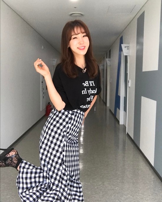 또 이지혜는 검은색 반팔 티셔츠와 체크무늬 롱스커트로 날씬한 몸매를 뽐냈다.